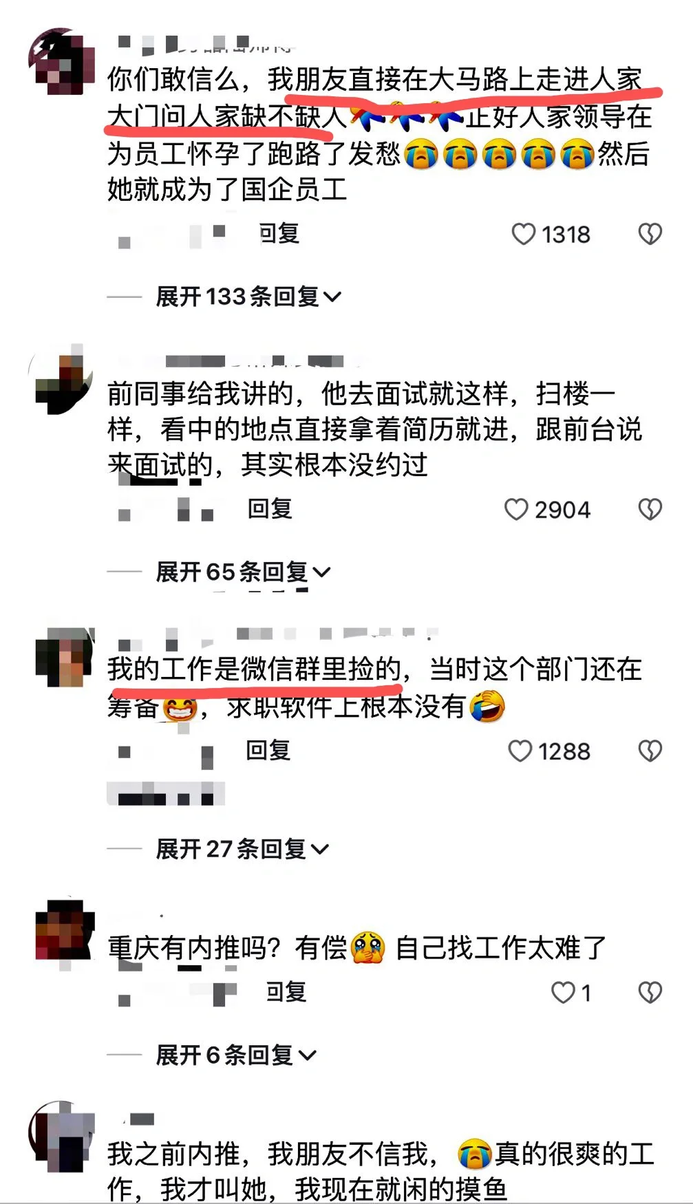 好工作都是野路子找来的 最近看到很多人说发消息HR已读不回,我跟之前公司的HR了解了下情况。 现在招聘软件要充💰要开会员才能放出一部分简历,充的💰越多看到的简历越多,求职也一样,需要充💰才能使简历有更多的曝光度,被更多的企业看到,所以也许你找不到工作,并不是你的能力不够好,也不是简历不够好,也许你想去的公司根本就看不到你的简历。 某些招聘软件上发布招聘的岗位费用是按年收费的,哪怕这个岗位不招聘了,这个岗位也会一直在上面挂着,而且系统还会帮企业自动刷新,所以你会一直收到系统的推送消息,就一直以为这个公司还在招人,但是你不管怎么私信发简历,HR都不会回复。而且有些岗位为了吸引人投递,明明薪资只有8k,你看到的确实10-20k。 线上渠道是我们平时用的多的找工作的方法,但是有时候也可以试试一些野路子,以下是我想到的一些野路子。 野路子1: 如果能联系上想去的公司的人,可以让对方帮忙内推,同等条件下,HR和用人部门都会先考虑内推过来的候选人。 想去的公司没有认识的人可以内推,可以试试niu客网,里面会有一些公司的员工发布内推的消息,或者直接🔍是否有内推信息。 野路子2: 有意向的公司,自己平时多从各个渠道去留意它的动向,尽量找到它的所有信息渠道,去看有没有招聘信息。 野路子3: 招聘软件上修改默认打招呼用语,改成能够凸显自身与职位匹配度的话术,将自己的简历存为图片,碰到特别心仪的岗位,直接发给对方,方便对方了解你的情况。 野路子4: 如果一个公司的某个岗位同时有好几个HR在招,不要只跟一个人沟通。因为在招聘平台上,每个账号的权限可能不一样,HR彼此之间的标准也不一样,如果这家公司你很想去,尽量都发。 我上一份工作就是HR一直不回消息,我发到了CEO的账号里面,CEO把我的简历转给了HR,然后得到了面试机会,后来成功入职。 野路子5: 去面试时,可以留意下面试公司所在的附近公司,有没有你印象不错的,有的话可以在线上的平台搜索一下有没有在招的岗位。 希望大家都找到满意的工作! #找工作 # #工作 #求职 #武汉 #武汉找工作 #求职季 # |