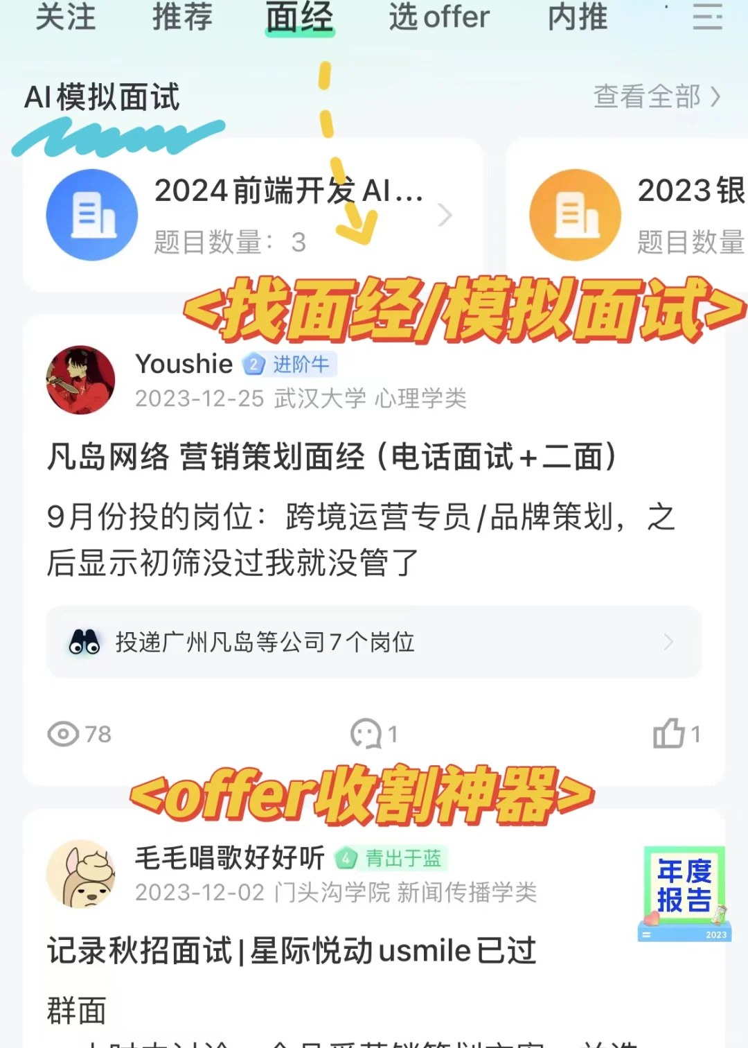 主要是上面还有很多前辈总结的面试经验,配合模拟面试,不用愁实习拿不到offer!