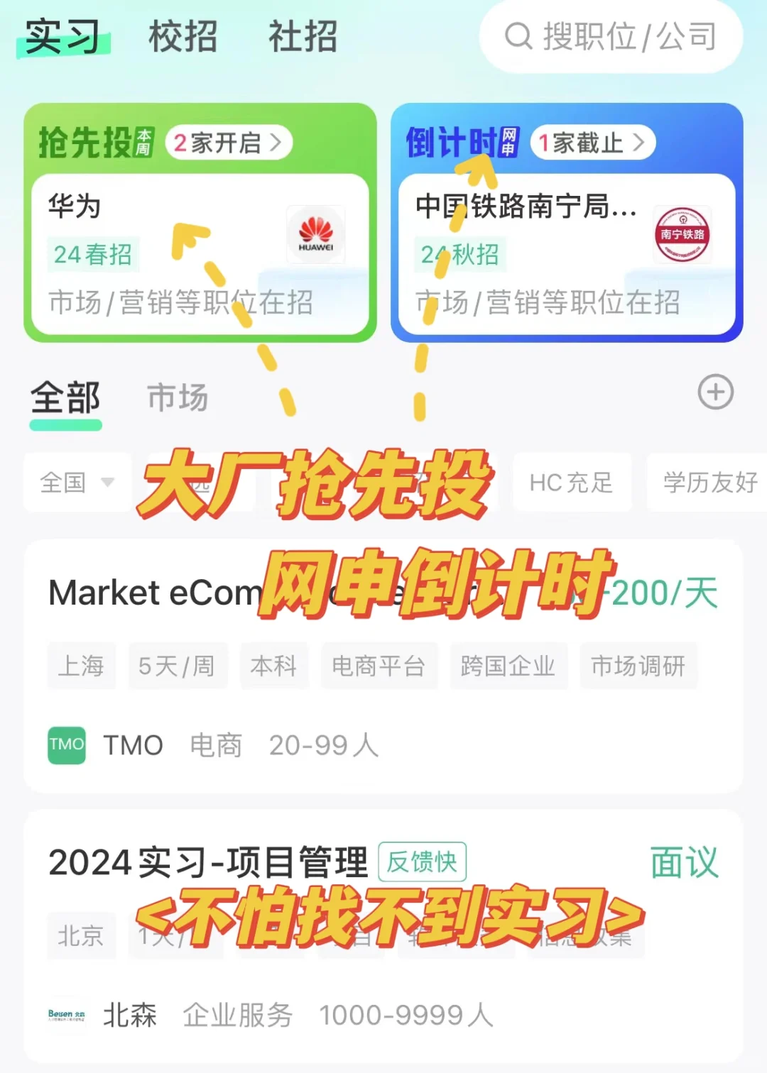 我看很多评论区有挺多宝子问校招的,可以去牛客上面看看,可以抢先投大厂,还有网申倒计时提醒!