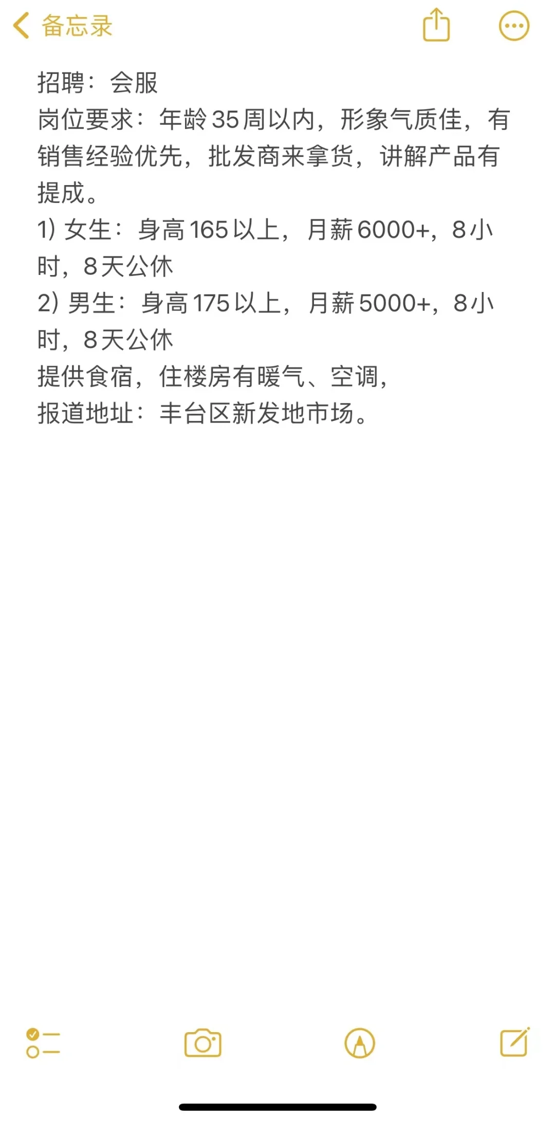>招聘:会服 女生6000+提成 提供食宿