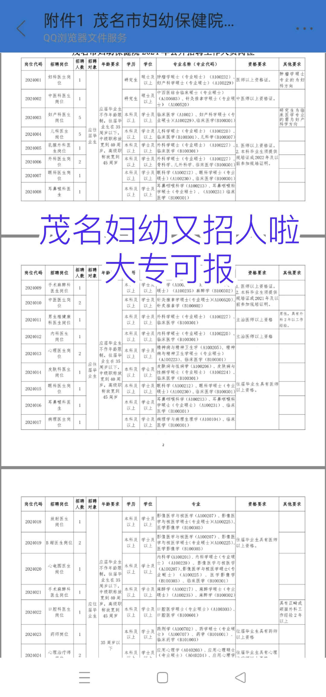 茂名市妇幼保健院招聘85人公告!中专可报!