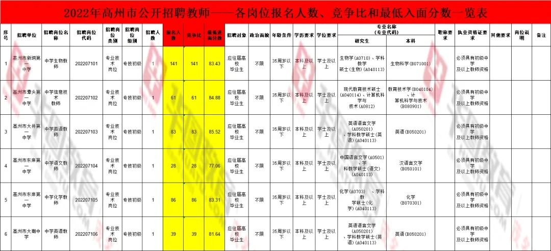 由此可见,高州教师招聘时间比较稳定,都是集中在每年六七月,今年茂名再次进行四市联考,目前电白公告已出,高州公告也即将发布,在此,小编带大家回顾2022年招聘考情,知己知彼,方能顺利备考上岸。