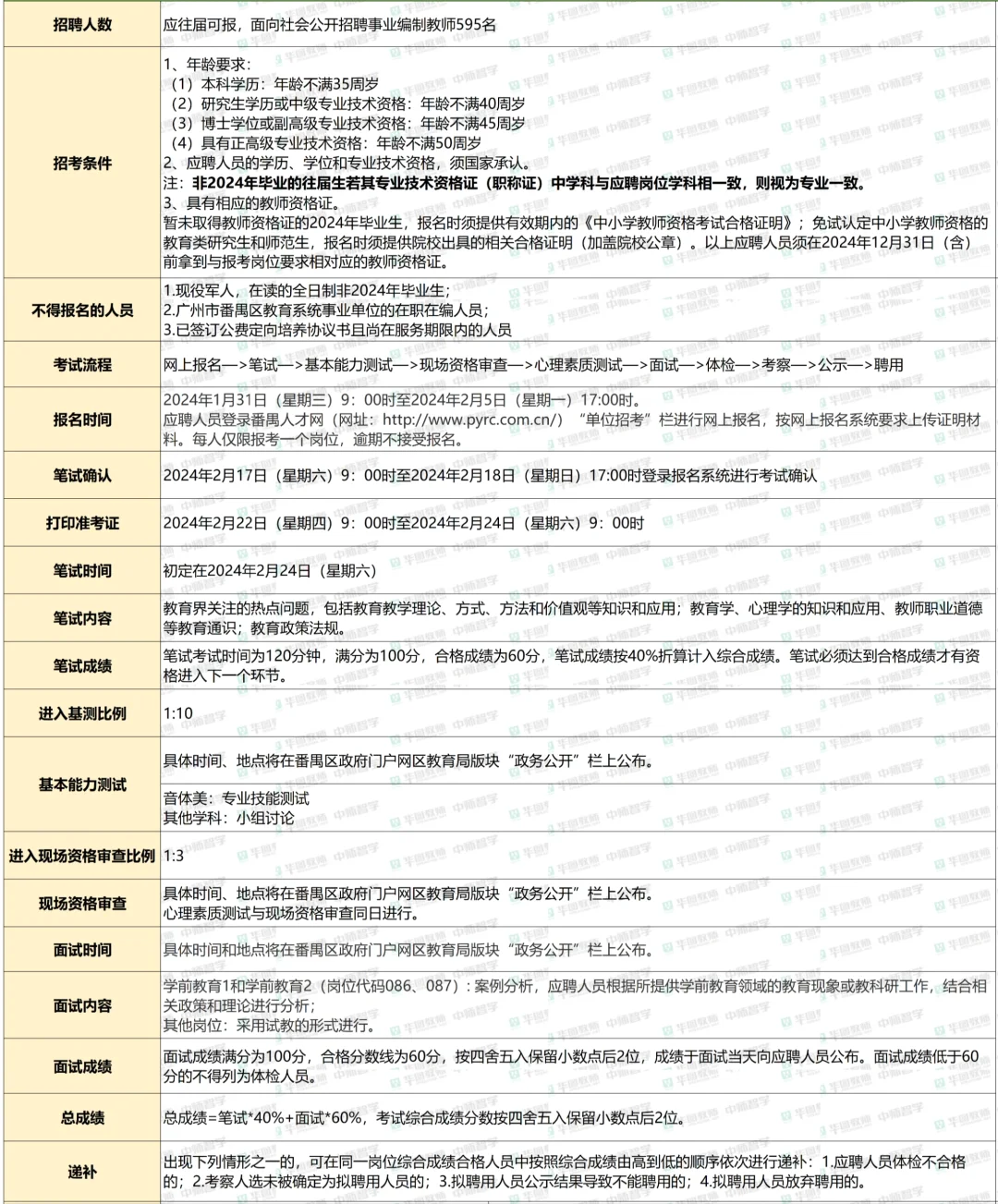 🔥2024年广州市番禺区教育局招聘事业编制教师595名公告