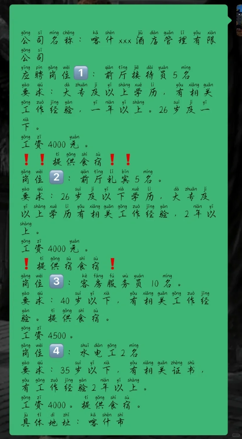 喀什的招聘信息来了😄