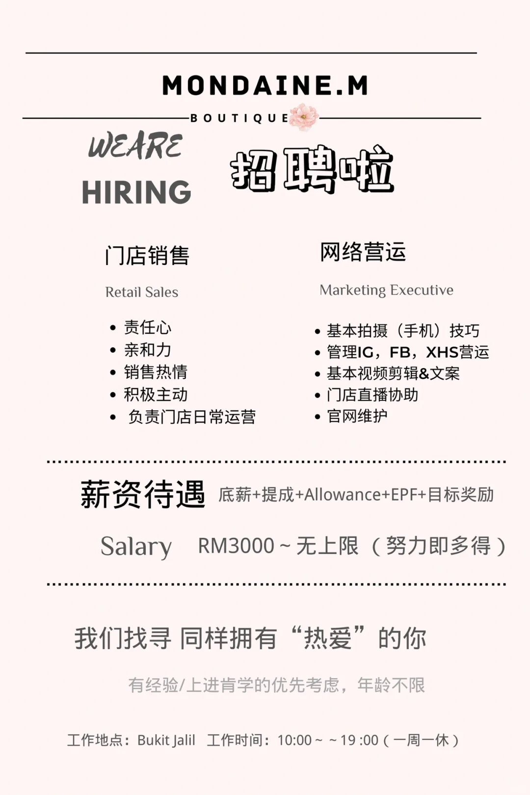 >🇲🇾【服装店】招聘啦招聘啦招聘啦❗️❗️