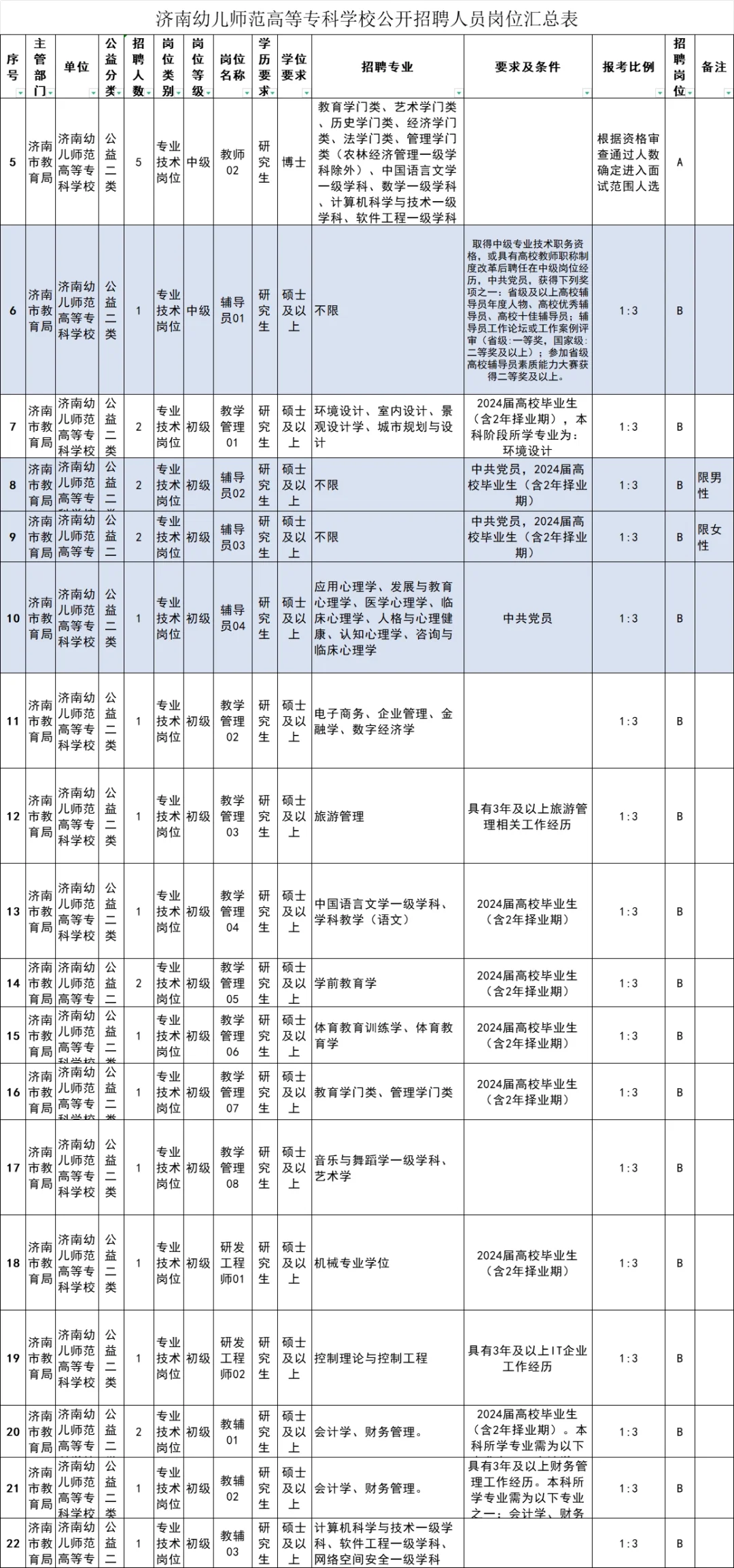 济南幼儿师范高等专科学校2024年公开招聘人员简章