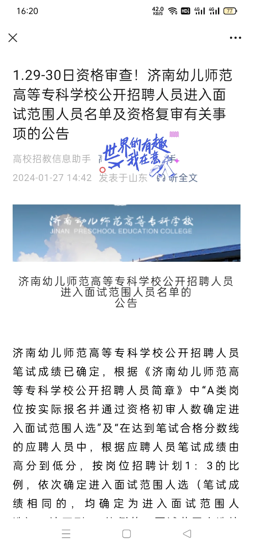 资格审查结束!济南幼儿师范高等专科学校公开招聘人员进入面试范围人员名单及资格复审有关事项的公告!
