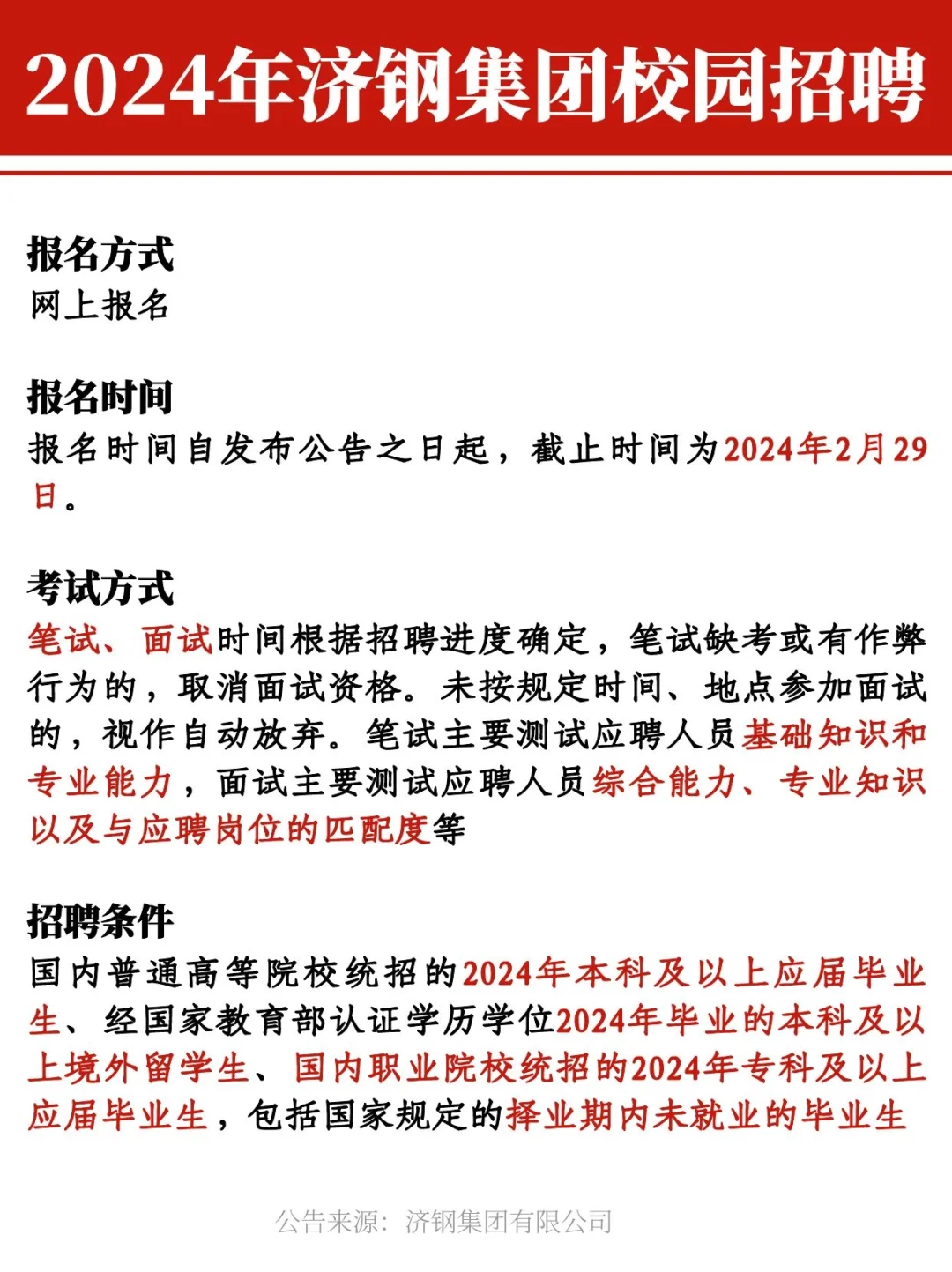 济南市属国企济钢集团有限公司招聘98人[哇R]