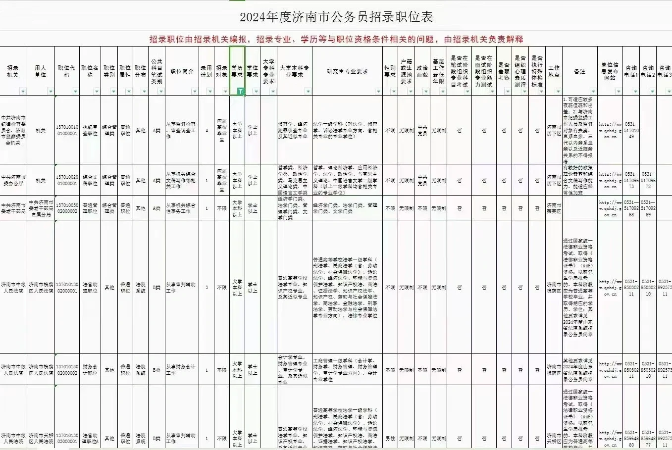 ❤️2024年度济南公务员招录职位表