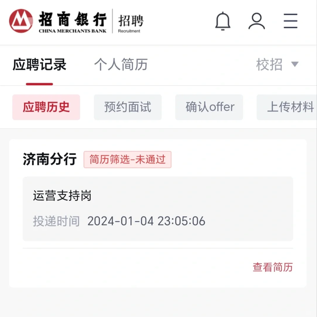 >招商银行居然连简历都没过😂