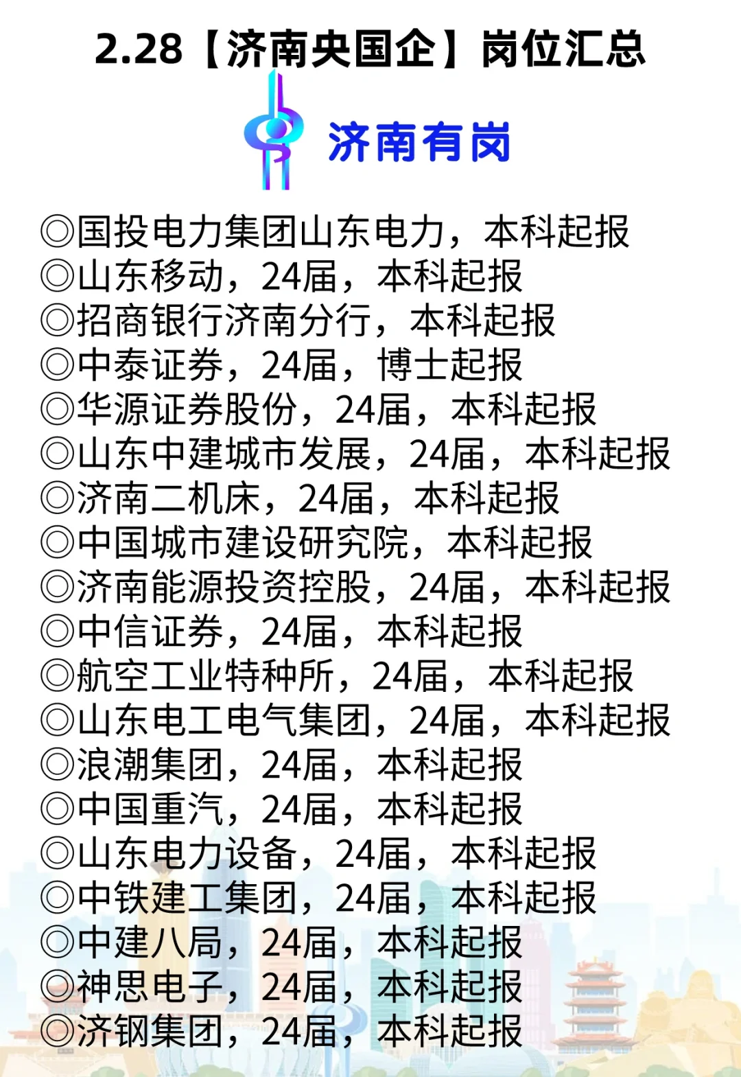 济南24届可投递央国企岗位信息汇总