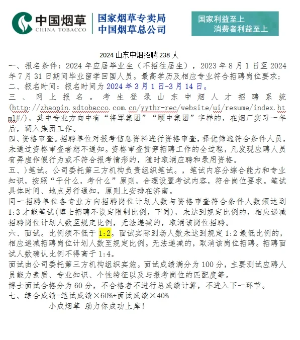 每名应聘者限报考一个岗位,其中专业方向中有“将军集团”“颐中集团”字样的,在烟厂实习一年后,调入集团工作。
