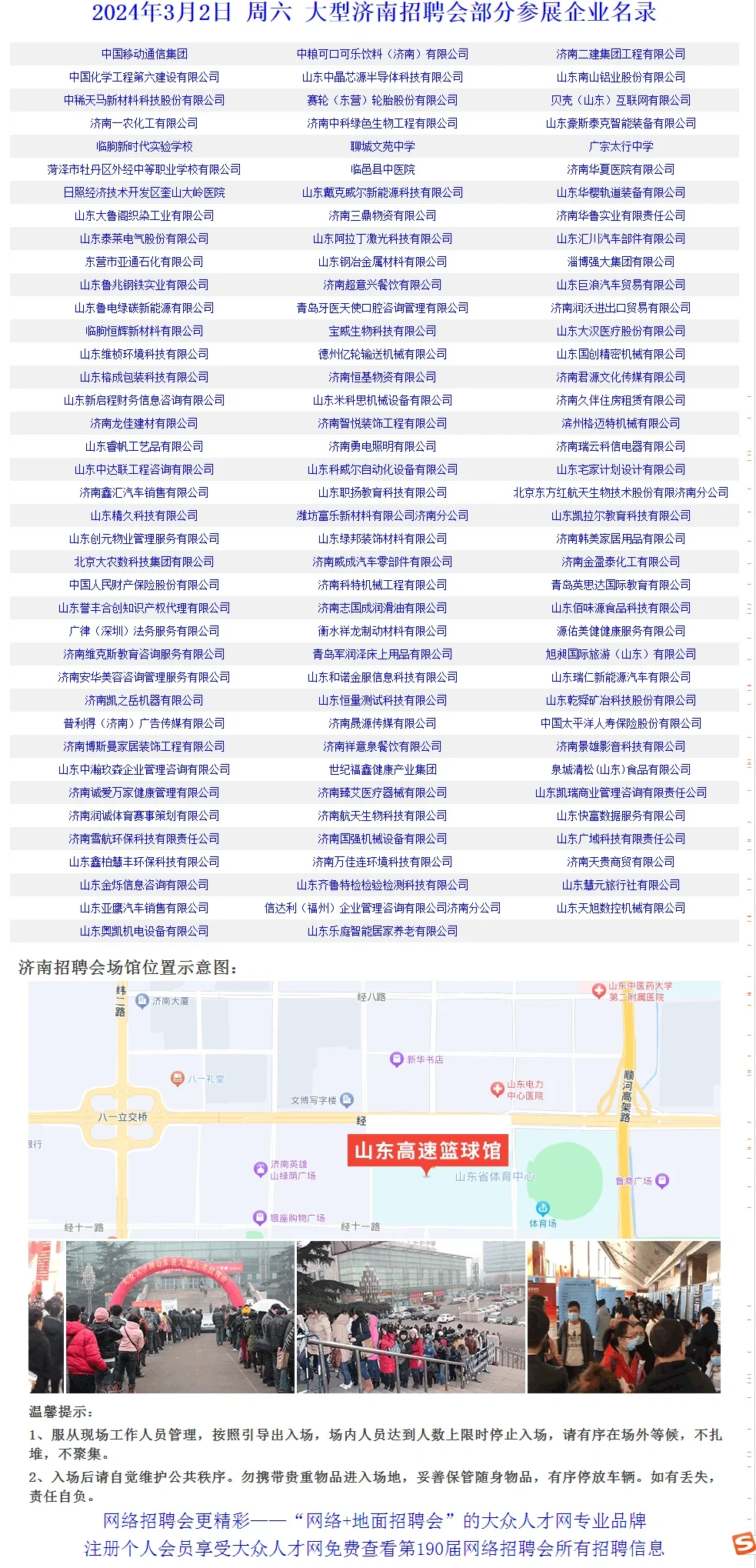 3月2号上午再山东省体育馆举办春季大型招聘会,求职者免费进场。