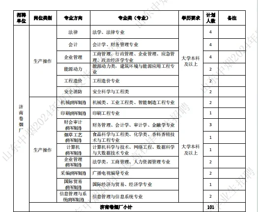 。2024山东中烟工业公告已出招聘238人!