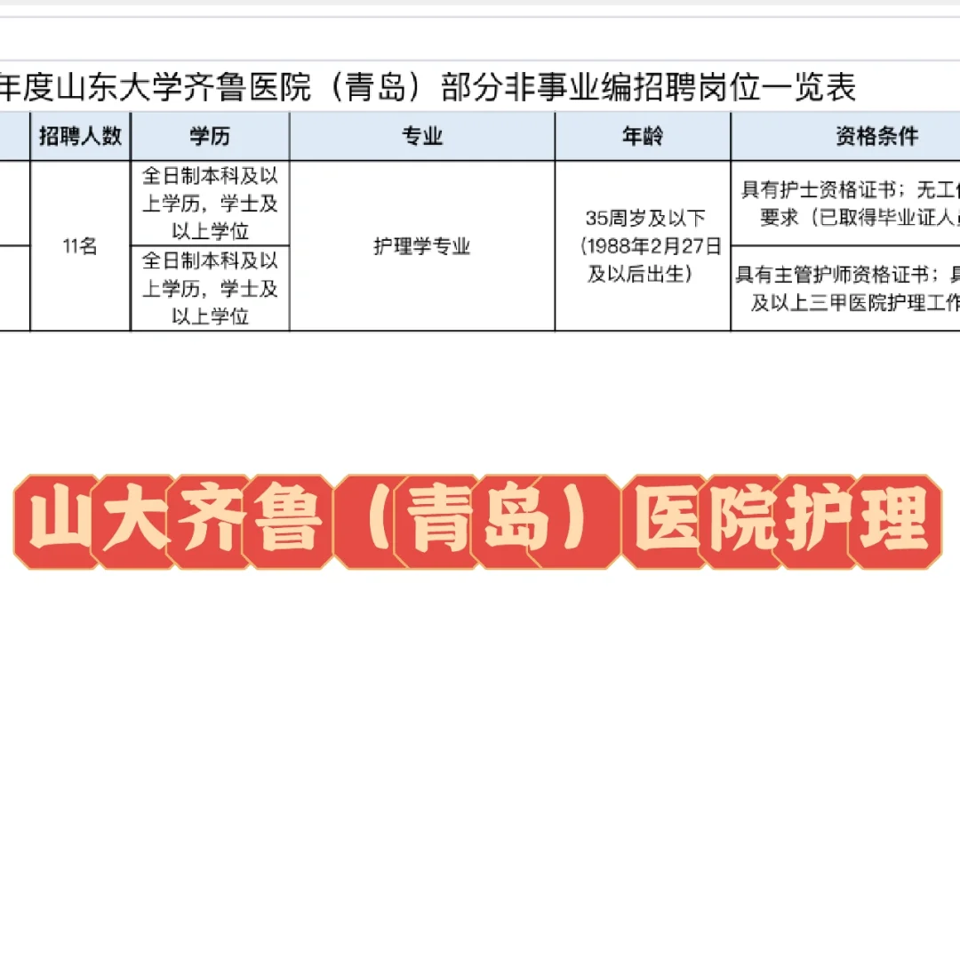 山东大学齐鲁医院(青岛)2024年度部分非事业编制岗位招聘