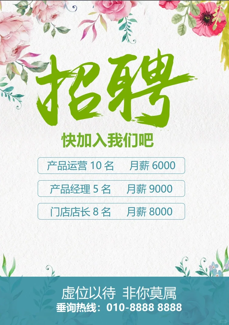 经典招聘文档,用于编辑招聘信息,然后吸引有意愿者前来报名。