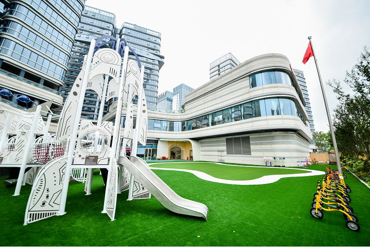金苹果新蒙幼儿园位于成都高新区博雅城市广场,2011年9月开园,2023年评为成都市一级园。幼儿园建筑面积约3114平方米,分为地面三层和上下两个户外场地,共有11个配套教室及多个功能室。