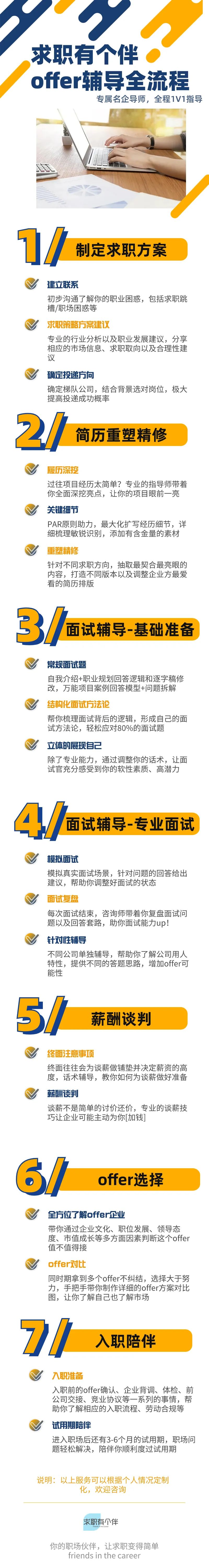 求职有个伴推出【春招Offer全流程辅导】将从简历修改、网申、笔面试到Offer选择,提升你的求职能力,直至助你拿下心仪名企Offer!