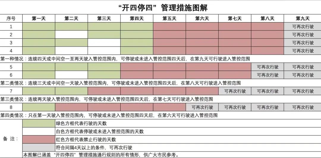*点击图片查看大图,若想快速了解自己是否限行,可通过“广州开四停四出行助手”查询 ↓