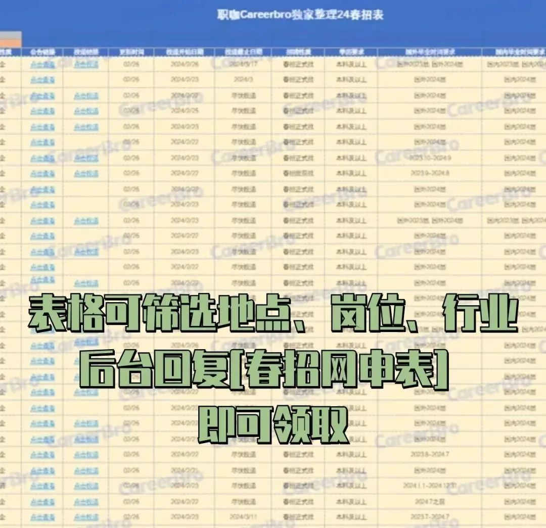 开启的企业越多越容易眼花缭乱、效率狂低,所以一份及时更新的表格一定是春招刚需: