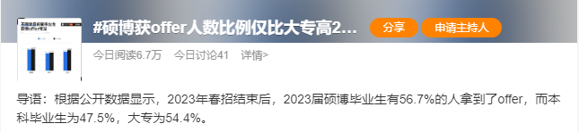 昨日一条 #硕博获offer人数比例仅比大专高2%# 的热搜更是将这种焦虑推向顶点。许多同学来找职咖吐露emo:难道我校招真的上不了岸吗?