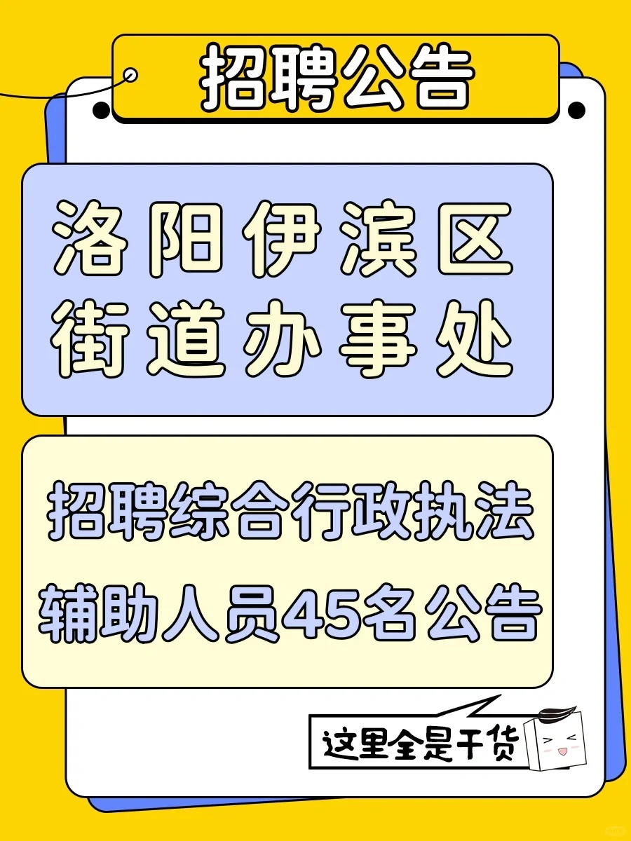 2024年洛阳伊滨区街道办事处招聘综合行政执法辅助人员45名公告