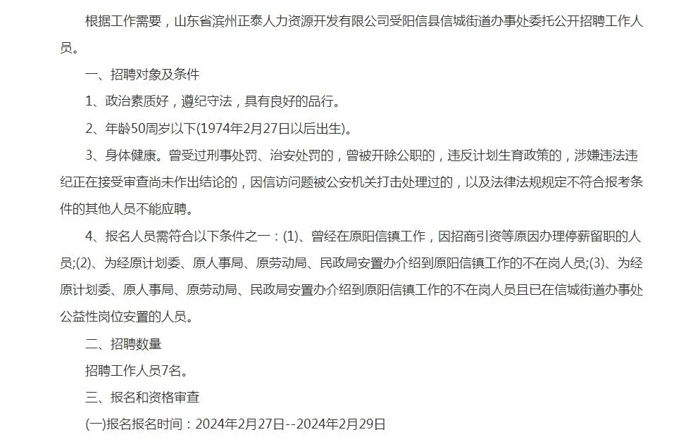 阳信县信城街道办事处招聘7人!明天报名结束哦~