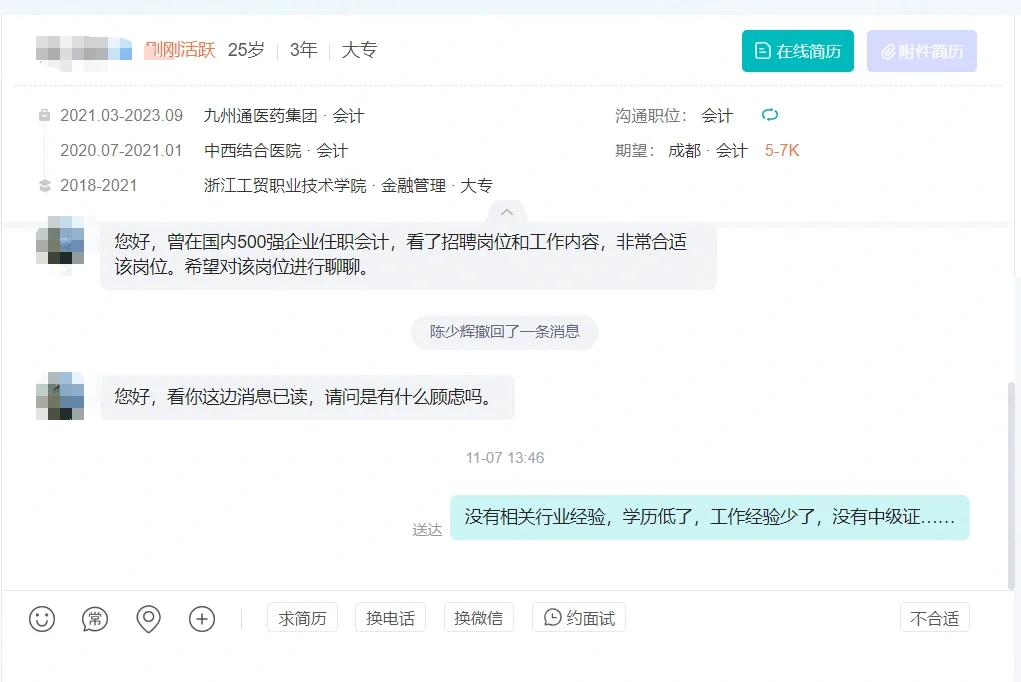 hr每天看的简历非常多,特别是一些供大于求的岗位,她们没办法做到一一回复,她们正在跟那些符合岗位要求的候选人火热沟通中