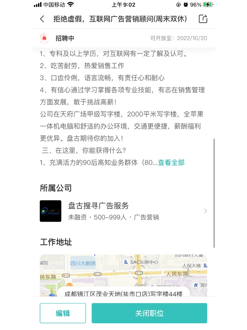 公司在天府广场甲级写字楼,2000平米写字楼,全苹果一体机电脑和舒适的办公环境,交通更便捷,薪酬福利更优异。盘古期待你的加入!
