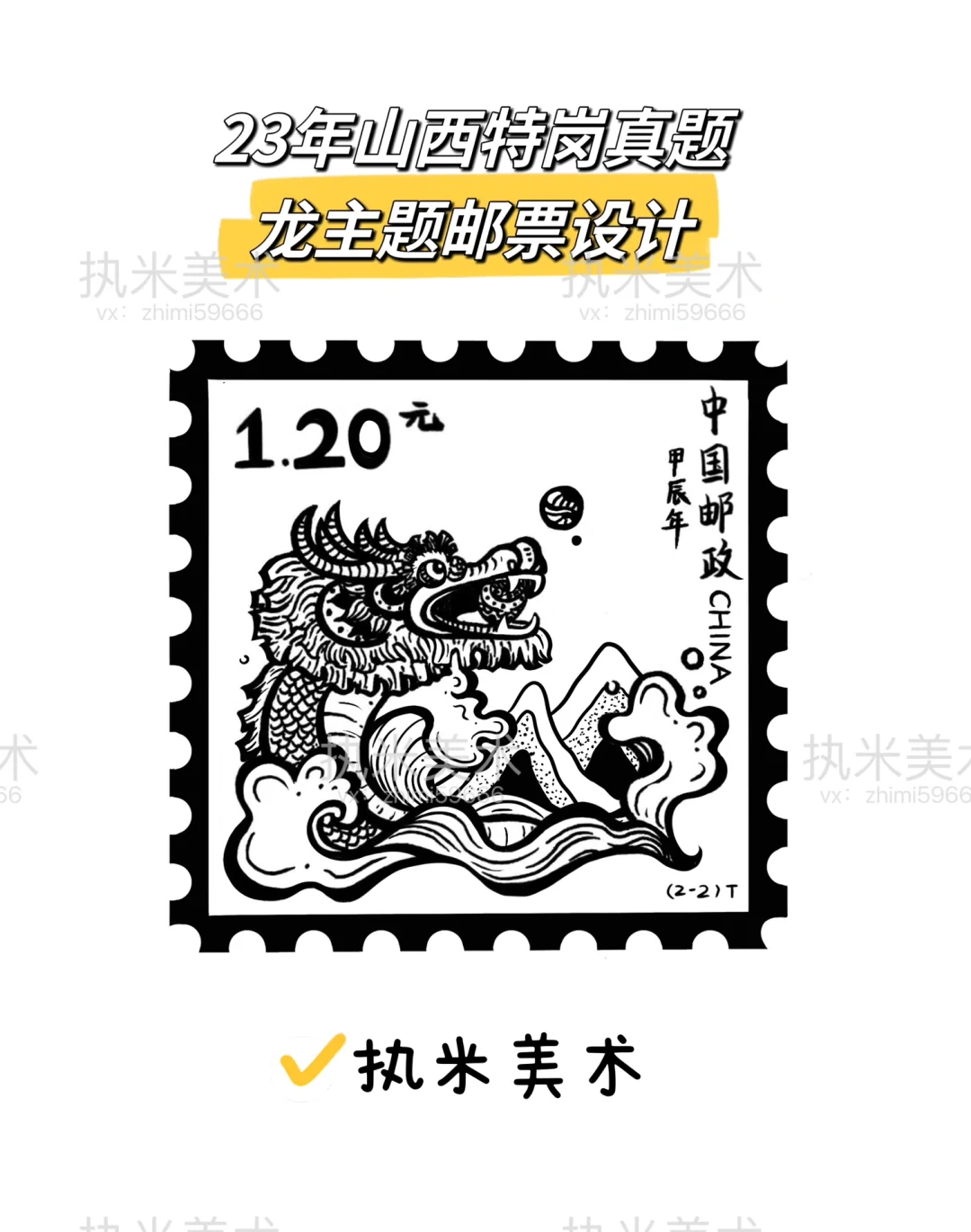 >✨23年山西教招美术真题 | 龙主题邮票设计
