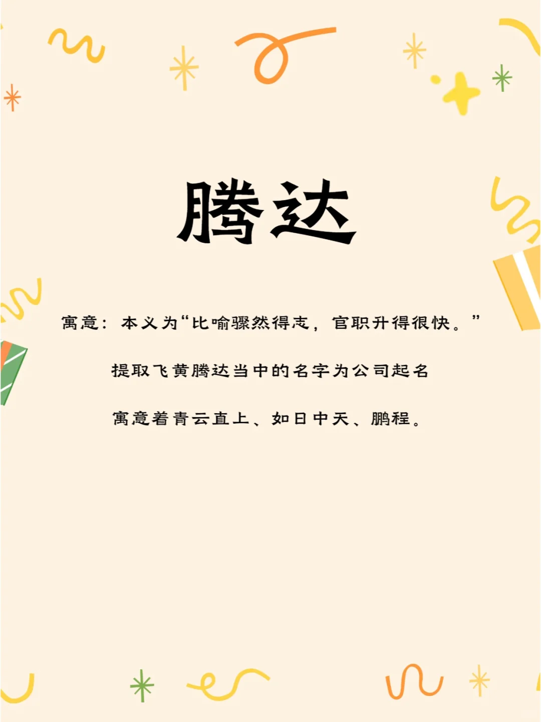 寓意:本义为“比喻骤然得志,官职升得很快。”提取当中的名字为公司起名寓意着青云直上、如日中天、鹏程。