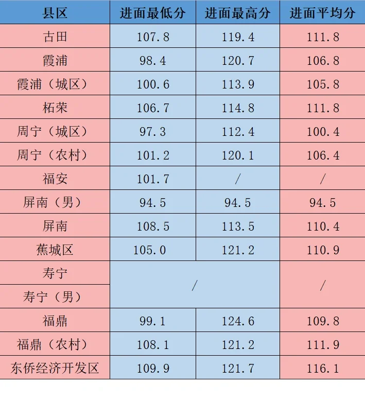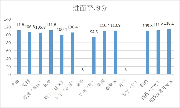 🍇进面平均分最高地区为:福鼎市(农村),111.9分