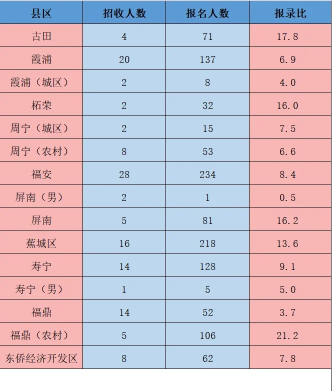 🍇宁德历年属于低竞争区,相较于22年招收人数,23年招收人数少了61人,整个地区的报录比提高到1:9.6,可见竞争还是很激烈的,备考24年宁德地区幼教的同学们对于笔试的备考还需重视!