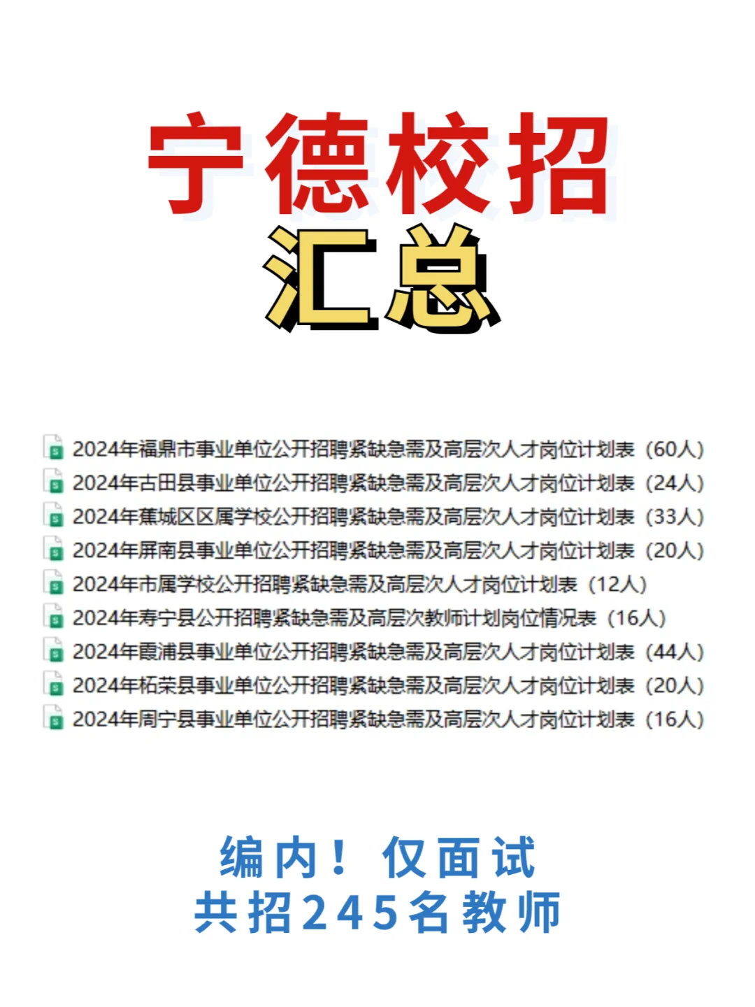 >招245名教师!编内!宁德校园招聘汇总