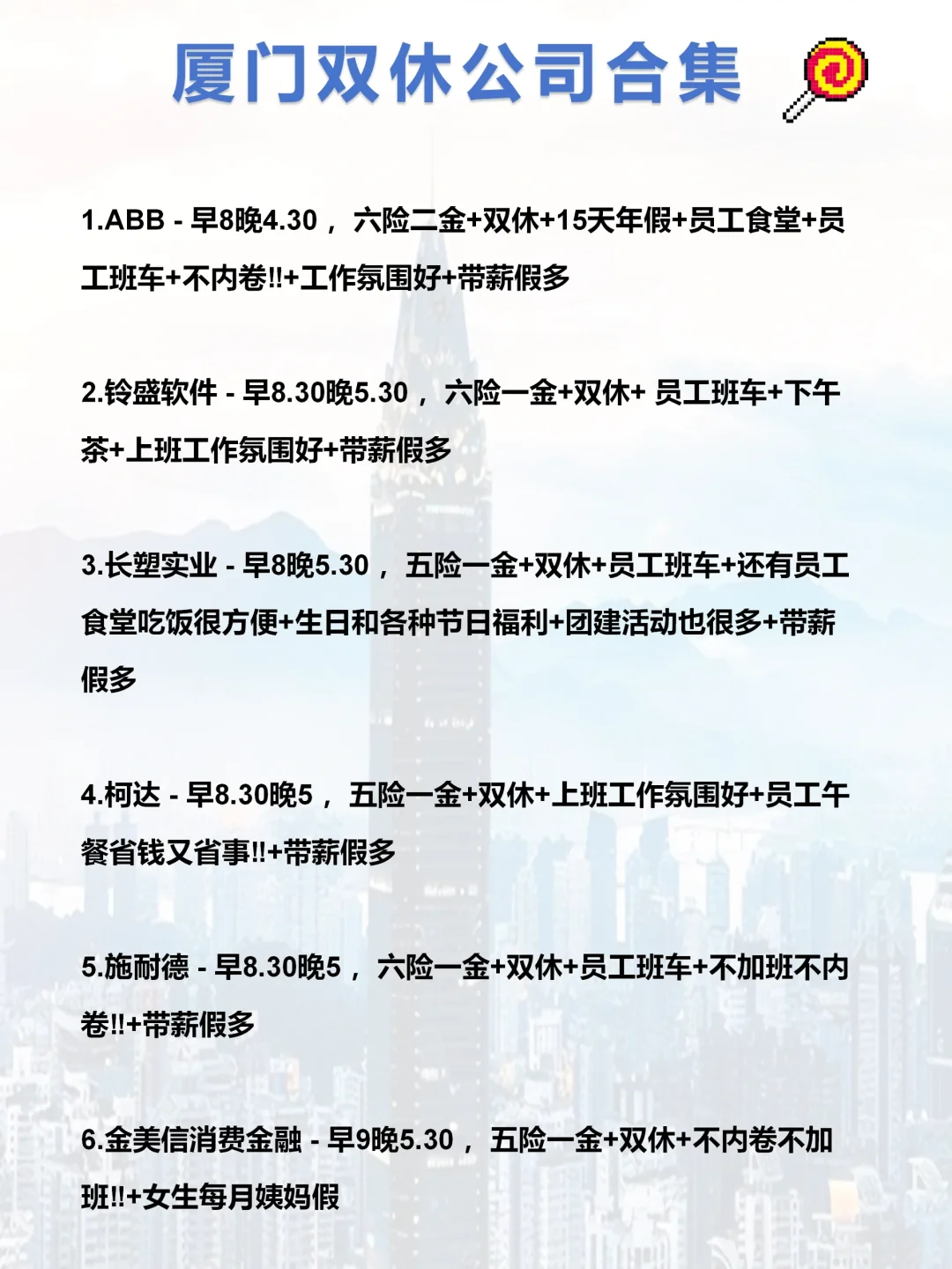 找份心仪的工作不容易,今天帮大家整理了一份厦门的双休公司合集💪🏻