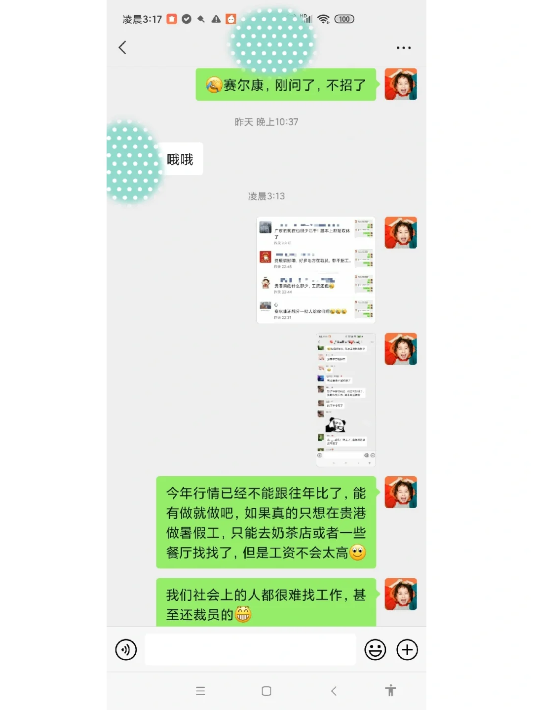 大家看看上面四张图吧,疫情影响,今年行情已经不能和往年比了,社会工裁员的裁员,公司倒闭的倒闭,找不到工作的也很多,社会工都已经很难,所以暑假工有得做就做吧,今年招暑假工的厂明显比往年少。
