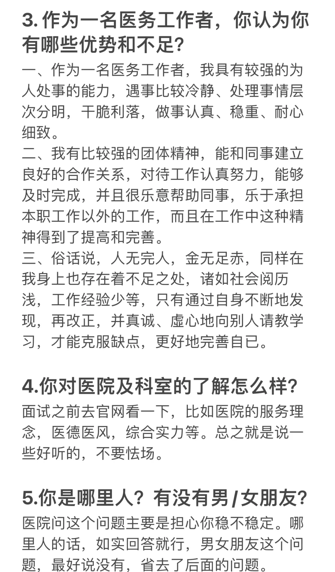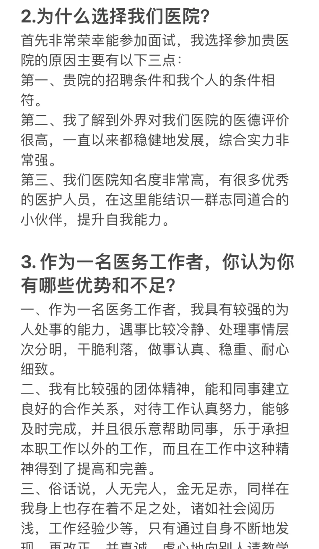 3⃣️作为一名医务工作者,你认为你有哪些优势和不足?