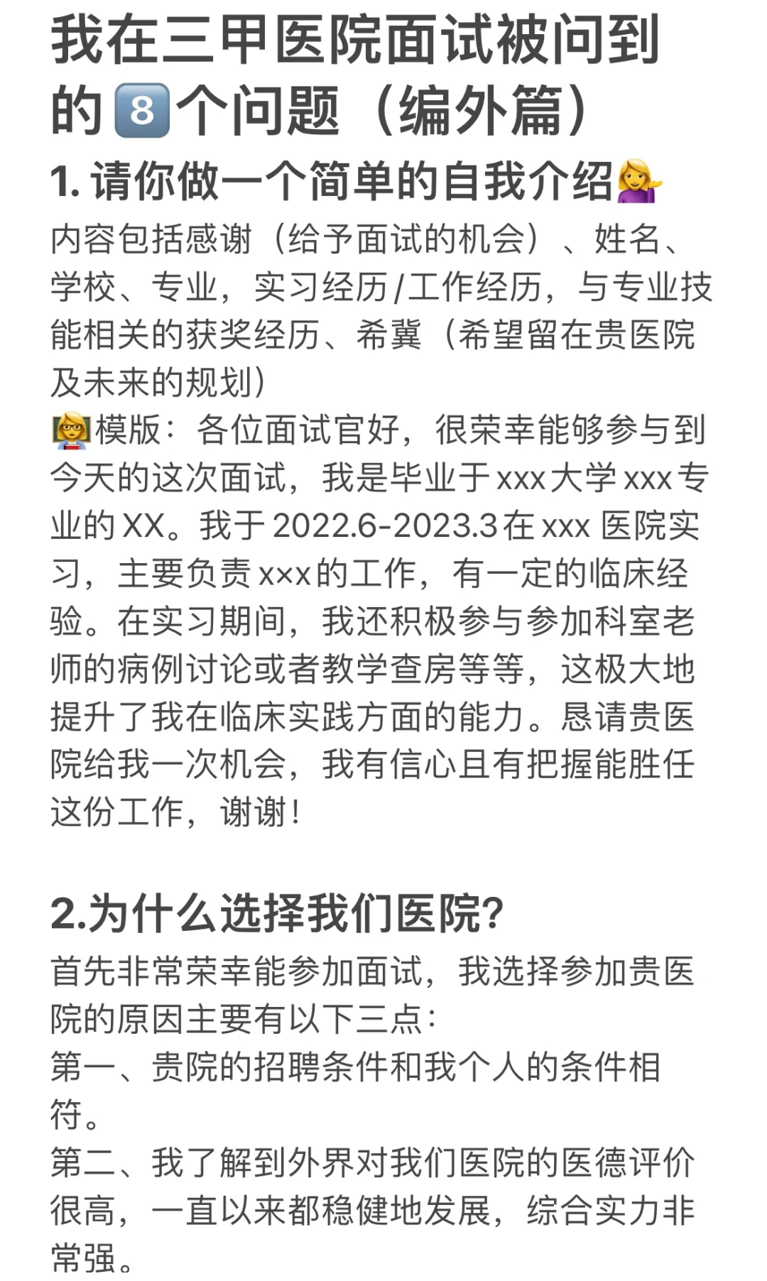 找工作的时候去了好几家三甲🏥面试,分享一些面试中被问及的问题。大家可以结合自己的情况提前做好准备✨