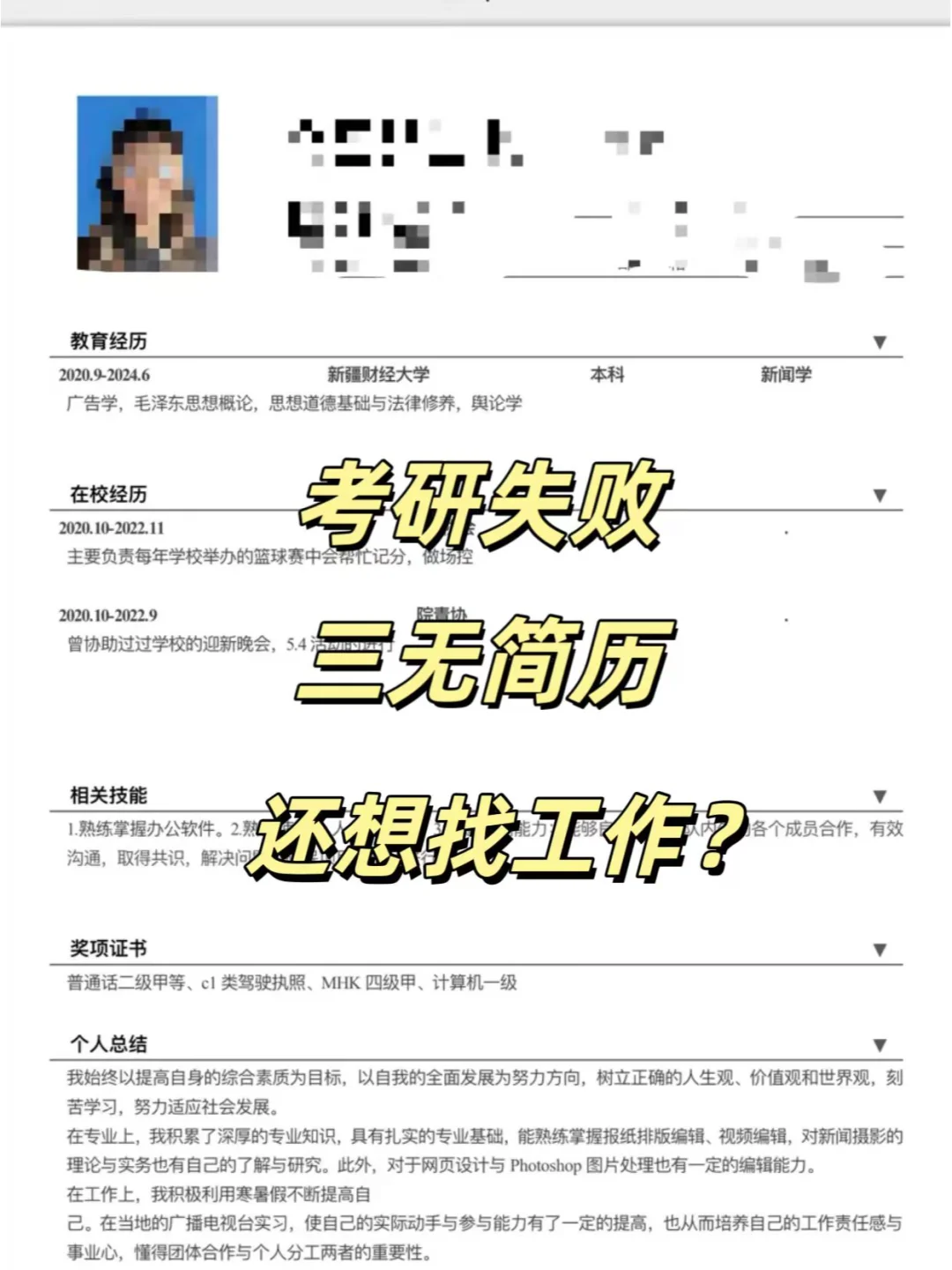 #三无大学生简历