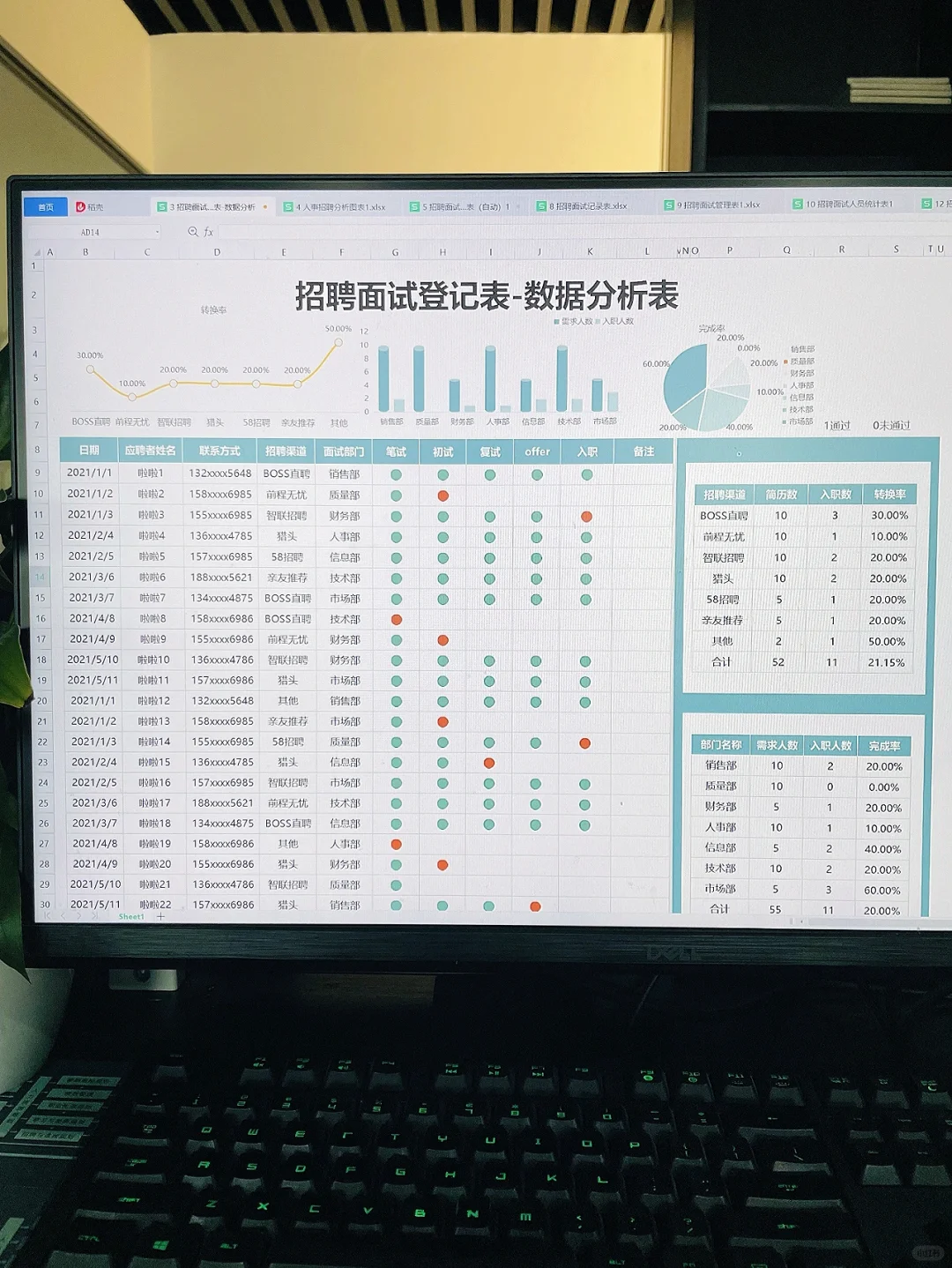简单的招聘面试数据登记表,也能反馈出很多关键数据,转化率、完成率等指标一目了然,这也许就是普通HR和优秀HR的差别。