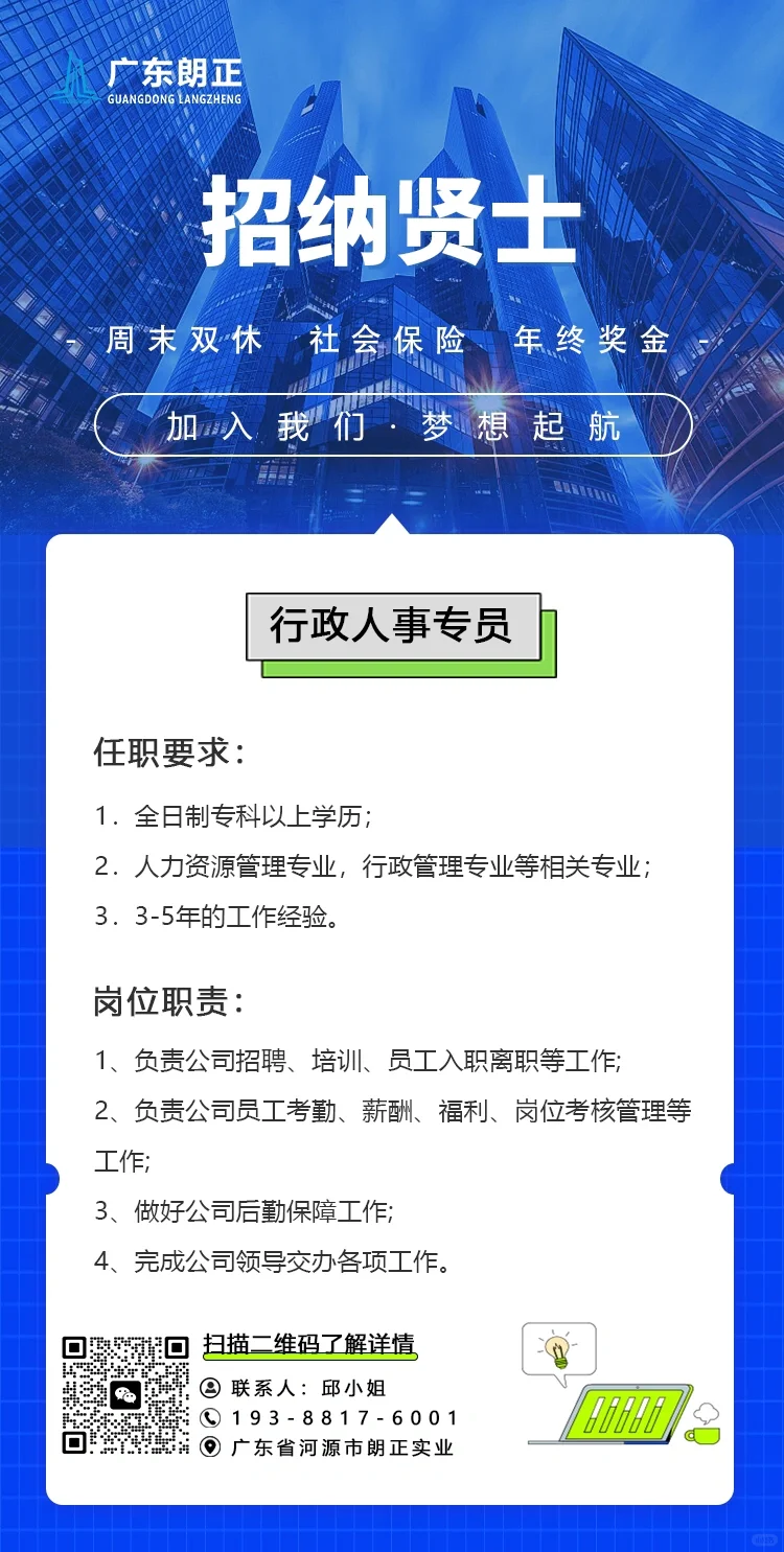 工作招聘咯!上班轻松休息多😊