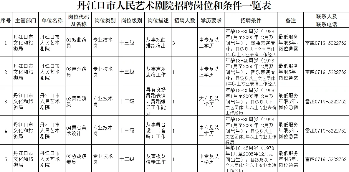 丹江口市人民艺术剧院发布公开招聘演职人员公告(招聘7人)