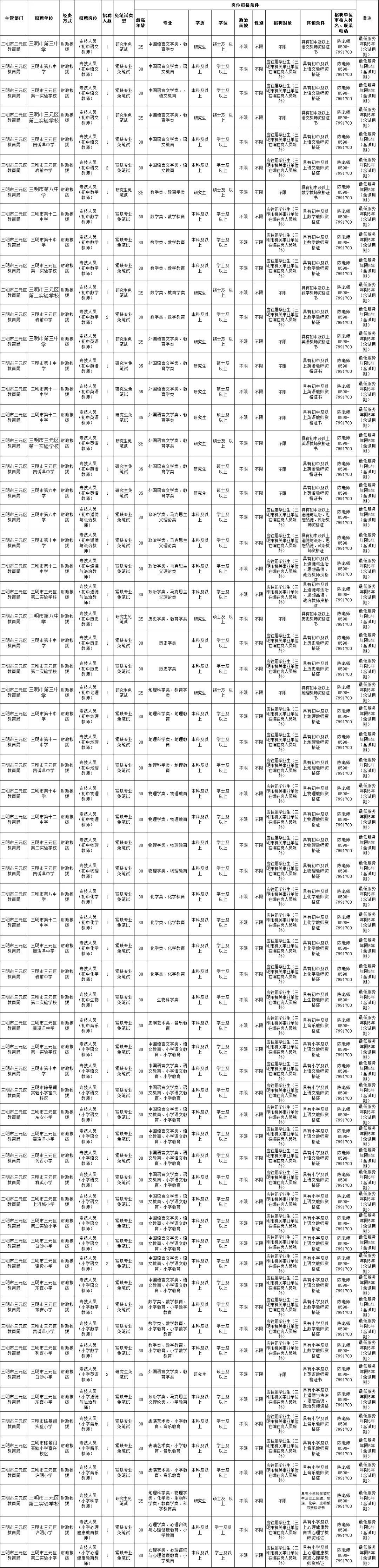 招聘岗位名额中学:语文7名,数学7名,英语7名,道德与法治4名,历史3名,地理4名,物理4名,化学4名,生物1名,音乐1名。小学:语文13名,数学3名,英语2名,音乐3名,道德与法治1名,心理健康2名,科学1名。