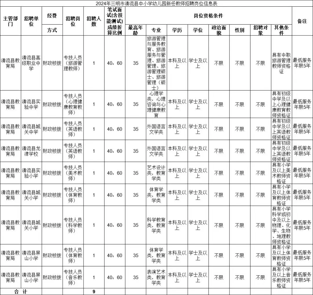 三明清流县教师 | 编内29人!免笔试!