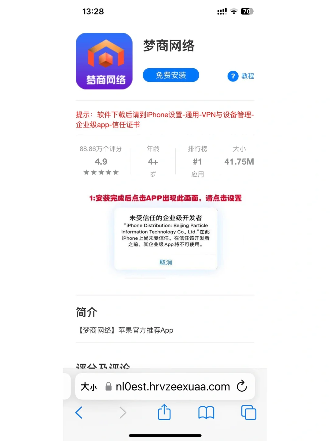 然后就出现图一图二这个所谓的人事和我对接,那位人事也说的挺详细的,但是重点是他发了一个WMRJ的办公地址,我一查是在海珠区的一个地方,他喵的,我就有点怀疑了,然后又说了一大堆,他们公司投资比较热门的美妆公司,还和我说叫我赶紧下载一个软件是用来在线试岗两天才能入职的,这么一波操作下来,我完全懵了,我一看那个App怎么看上去有点奇怪,就不想办公App,凑巧的是我刚好有朋友在WMRJ工作,我马上给他打了电话去确认,他说他们公司办公点不在这里,而且他们内部的办公软件也不是这个,也没有存在说先试岗这种。