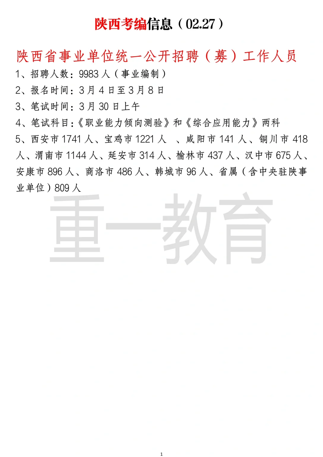 西安市1741人、宝鸡市1221人 、咸阳市141人、铜川市418人、渭南市1144人、延安市314人、榆林市437人、汉中市675人、安康市896人、商洛市486人、韩城市96人、省属(含中央驻陕事业单位)809人