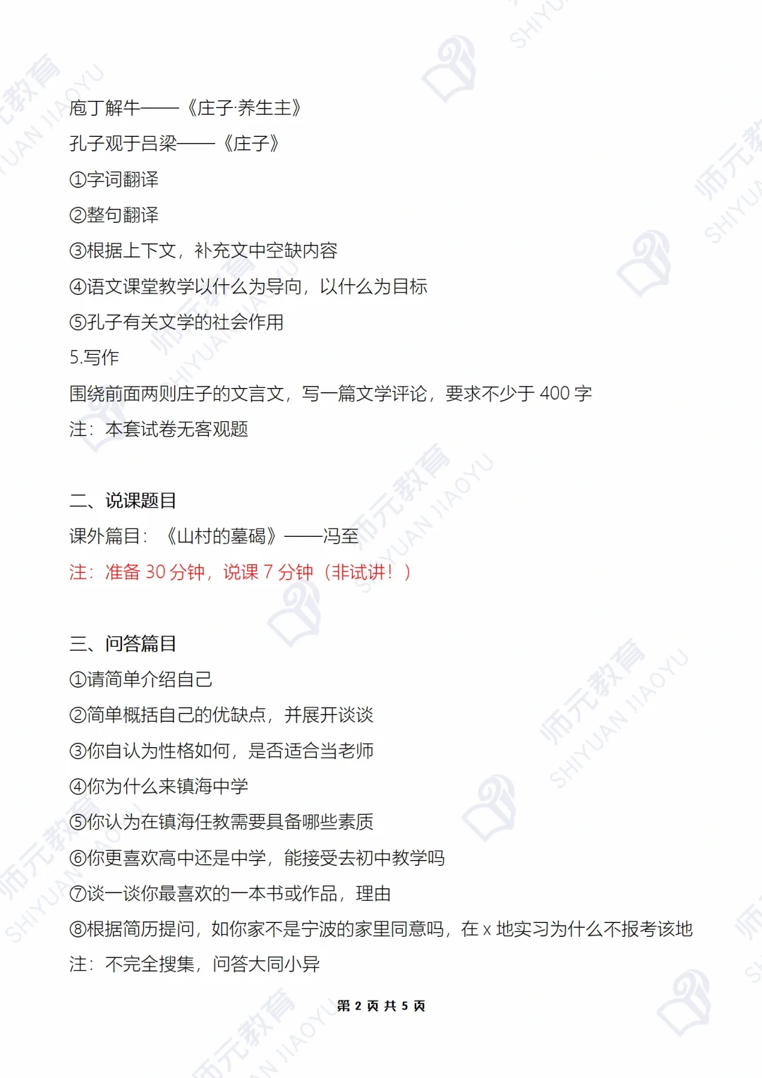 [二R]特别值得注意的是,面试是说课,不是试讲,不是试讲!篇目也是课外篇目,
