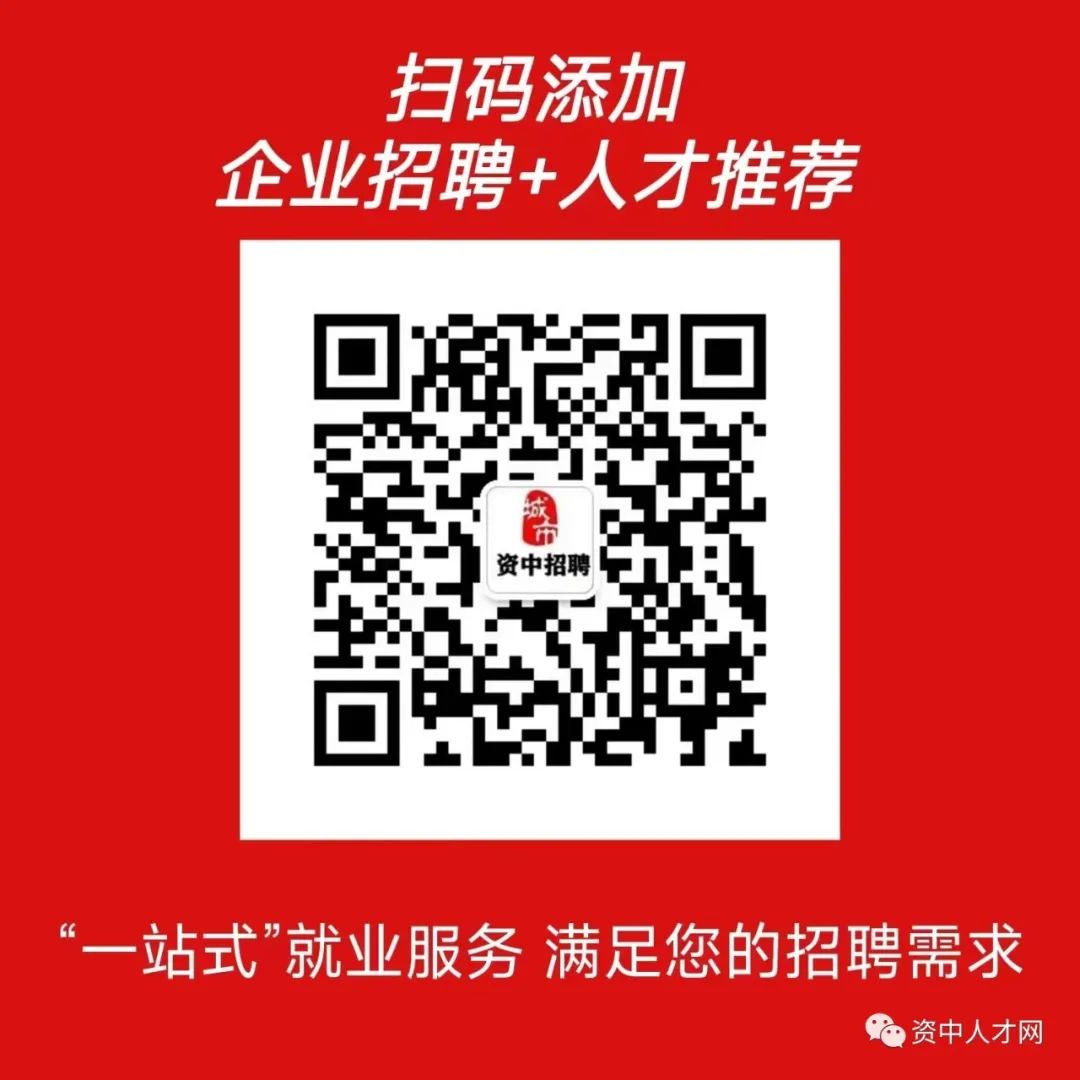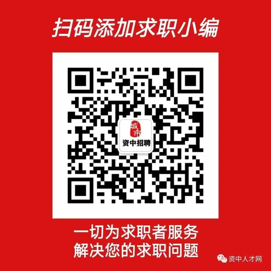 长按识别二维码,加客服资中在线招聘顾问小梁 更多优质岗位信息 点击进入【家乡通招聘】小程序查看 ↓↓↓