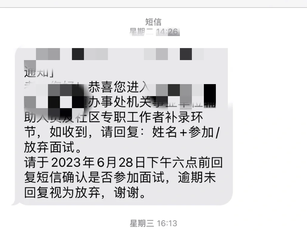 深圳福田某街道编外补录面试 参加补录面试的有40人。本人抱着体验面试的心态来,毫无准备,果然很糟糕,面试时间才五分钟。候场时候看其他面试者基本是在15分钟左右。 社区面试跟编制面试不一样,我以为会有情景题,更像是企业面试。 1.你是几几年的?你的学校跟专业是什么? 2.你上一份工作从事的内容是什么? 3.你有没有党建工作经验?为什么来应聘党建工作?跟你之前从事内容毫无相关 4.你的职业规划是什么?你更想从事什么样的工作? 由于我是三月份考试的,六月底才接到补录面试,已经忘记当初是考什么岗位,对于该岗位的工作内容,性质没有具体了解过,加上我面试的时候说的内容,意向度没有往该岗位靠,导致面试官直接问我是不是只是来体验面试的,给我问得头脑一片空白。 以上是我面试社区编外人员的内容,希望能给要准备面试街道办的小伙伴一些帮助。#街道办面试 #编外人员 |