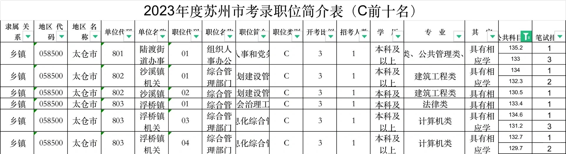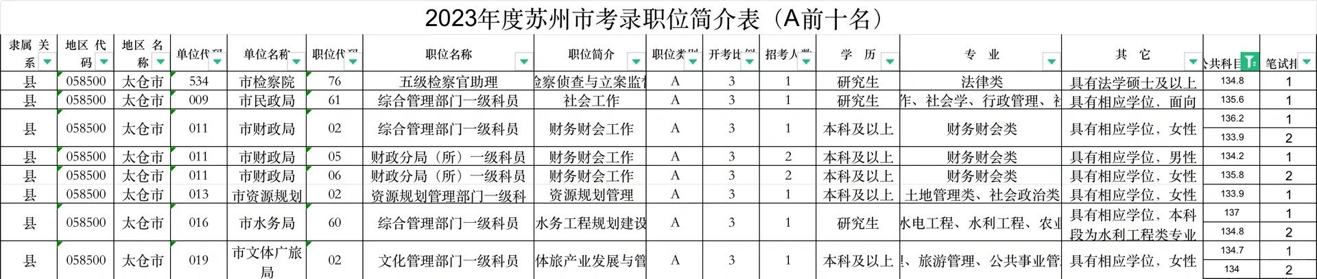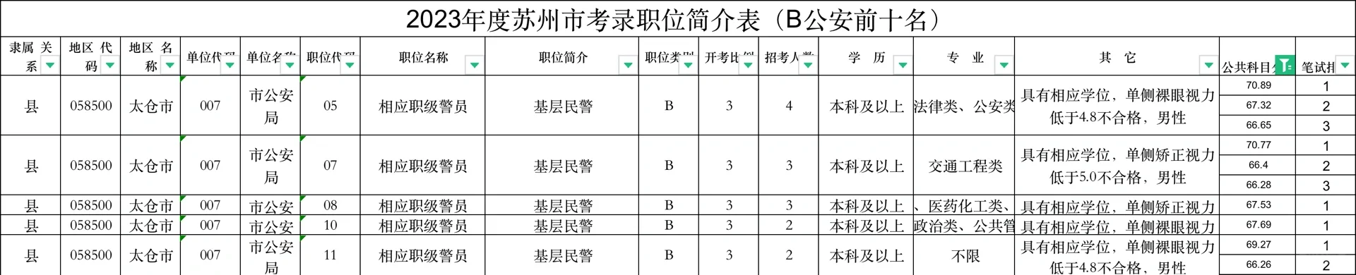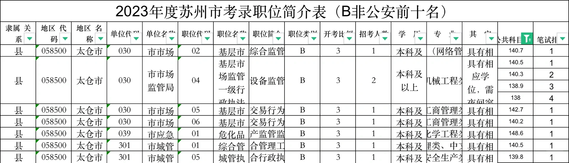 2023年太仓公务员进面情况、最高148.6